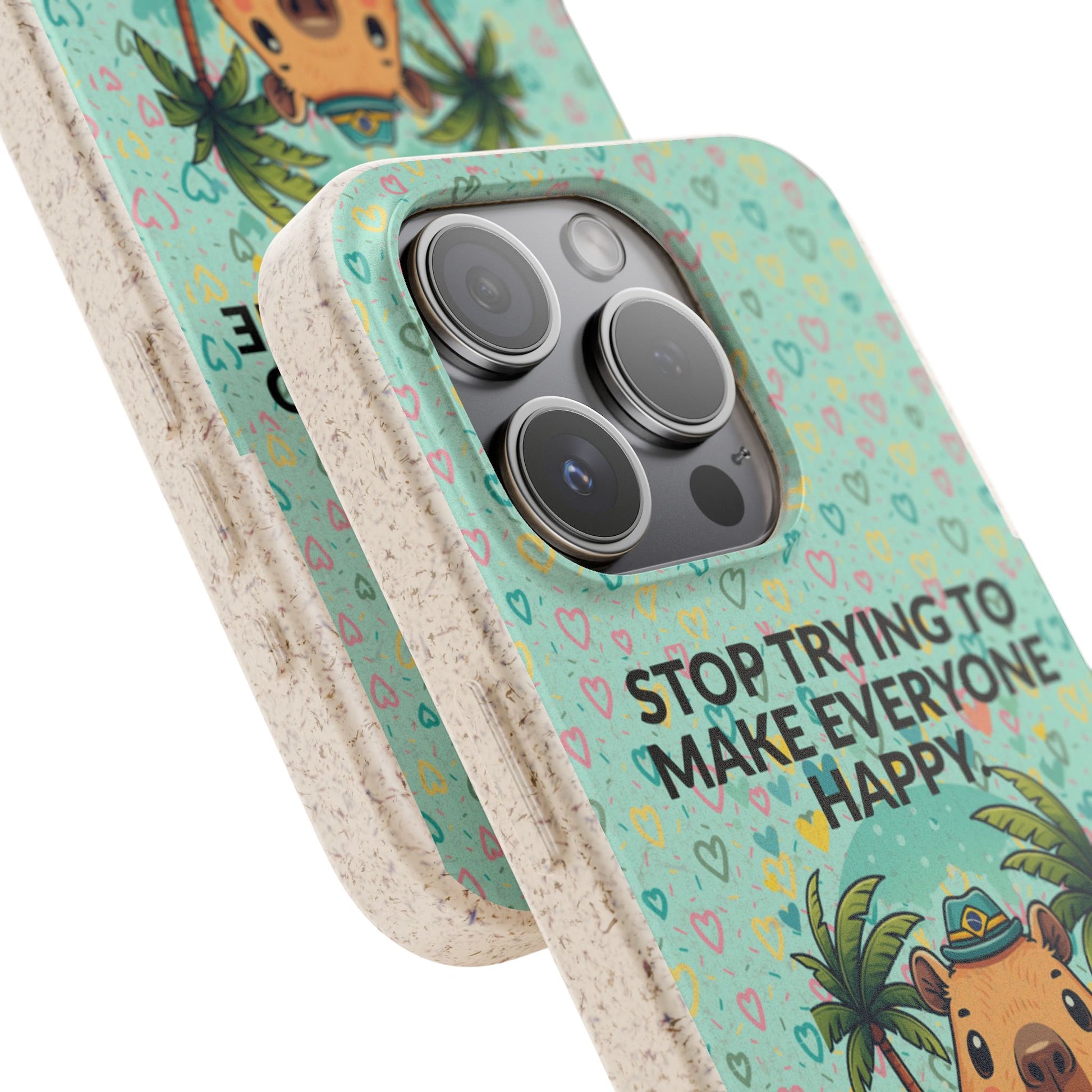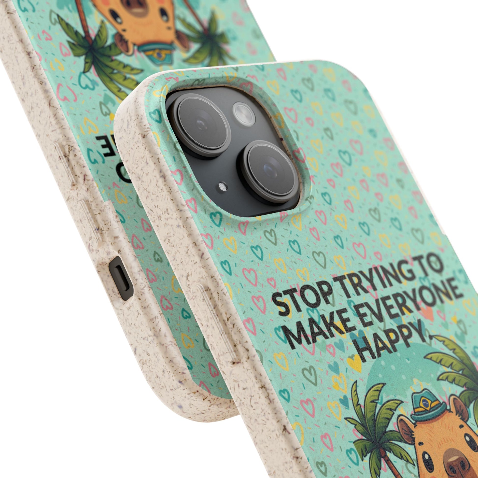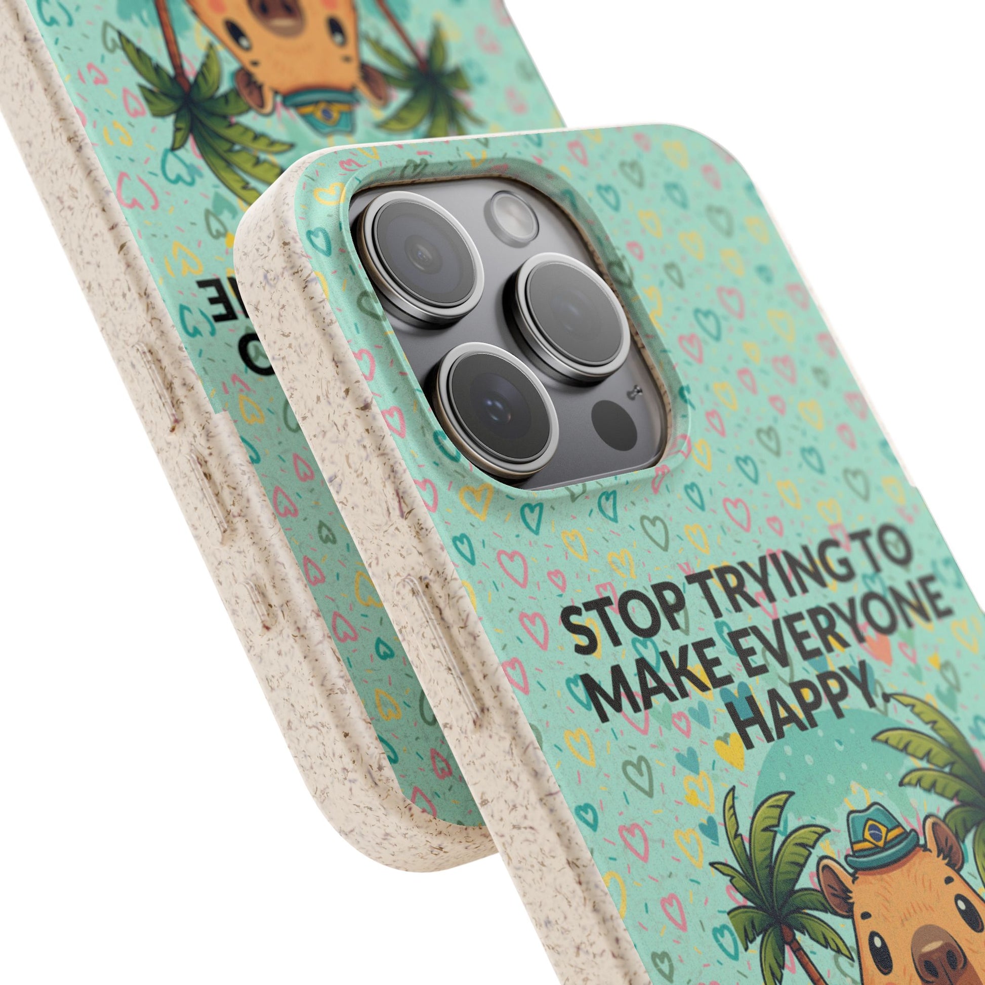 Make a statement for your mental health AND the planet with our Biodegradable Capybara Phone Case. Featuring the viral "STOP TRYING TO MAKE EVERYONE HAPPY. YOU'RE NOT A CAPIBARINHA" quote that resonates with recovering people-pleasers everywhere.