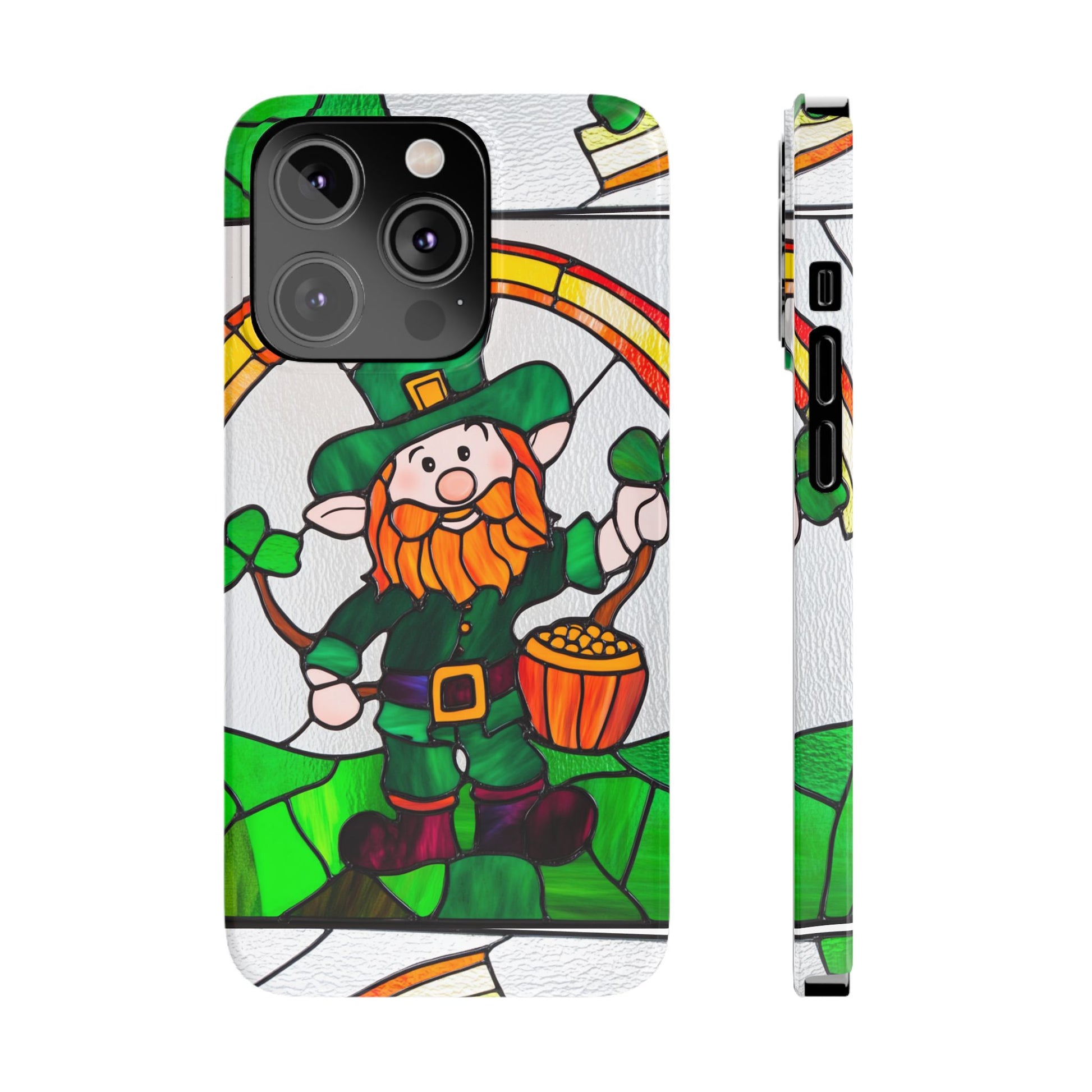 Let the luck of the Irish be with you, wherever you go. This slim iPhone case, adorned with a whimsical leprechaun and his pot of gold at the end of a vibrant rainbow, is a celebration of Irish folklore and a touch of magic for your everyday.