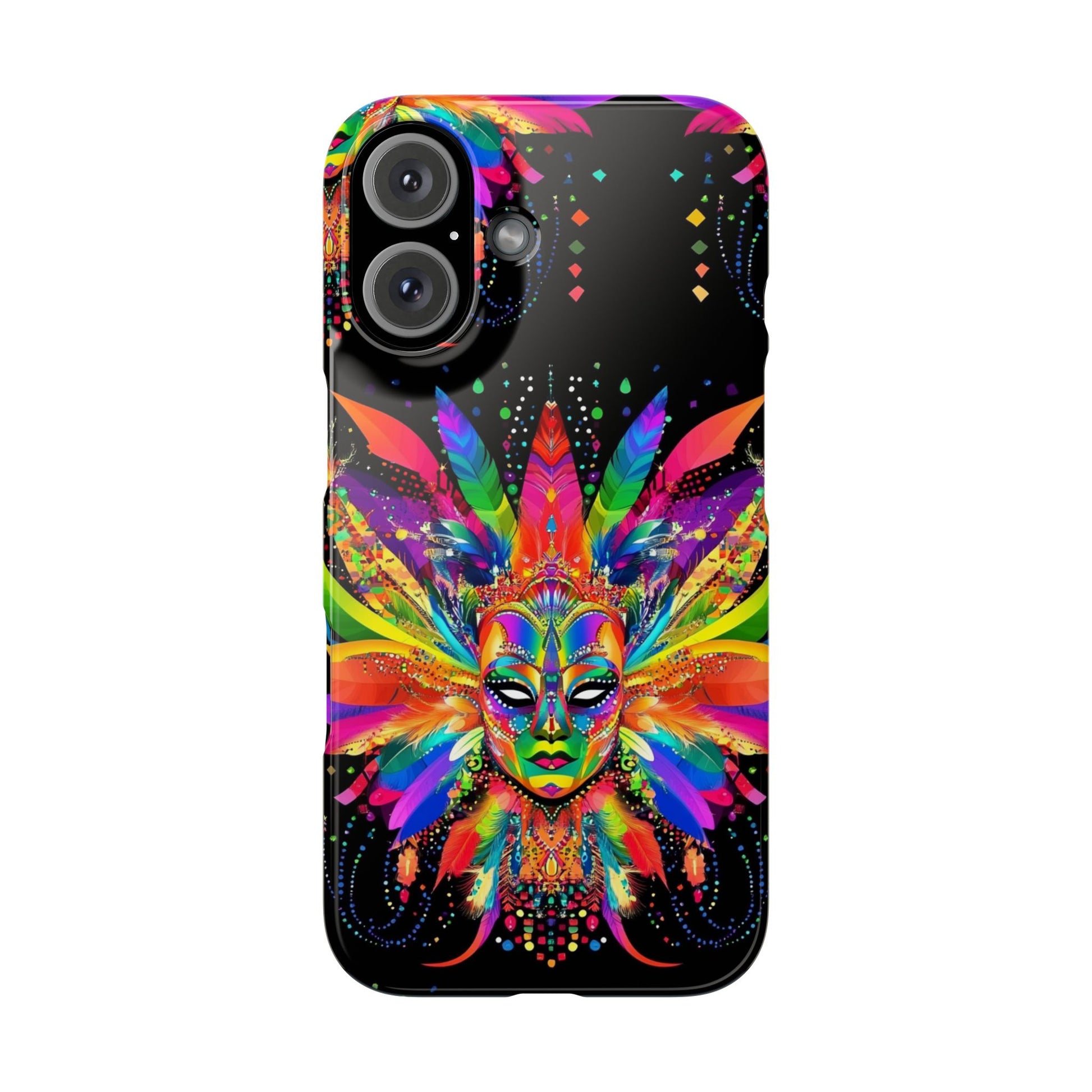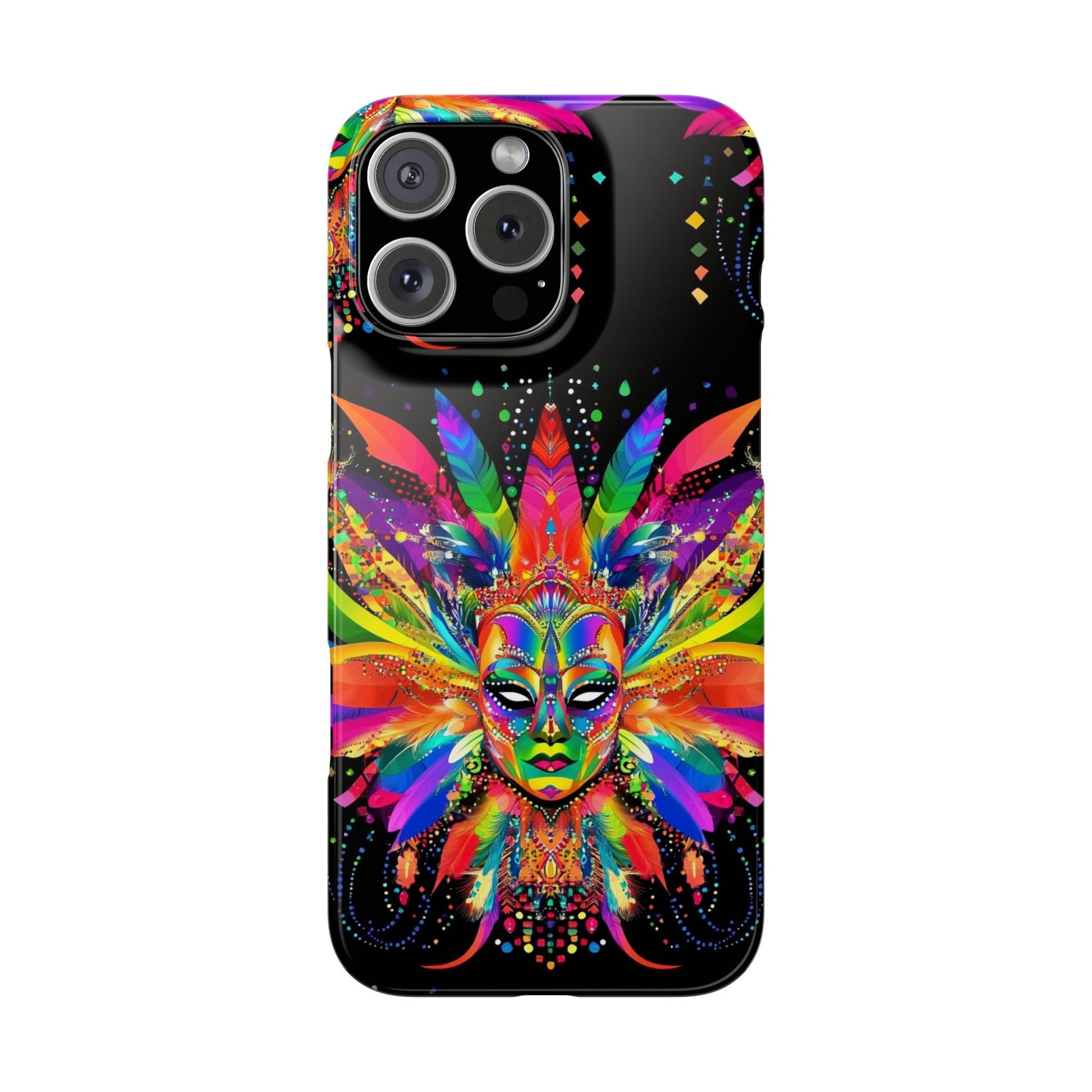 Let the vibrant spirit of Carnival ignite your soul with this captivating slim case, designed exclusively for your iPhone. Inspired by the dazzling costumes, pulsating rhythms, and infectious energy of Rio's iconic celebration, this stained-glass-inspired design transforms your phone into a kaleidoscope of joy and self-expression.
