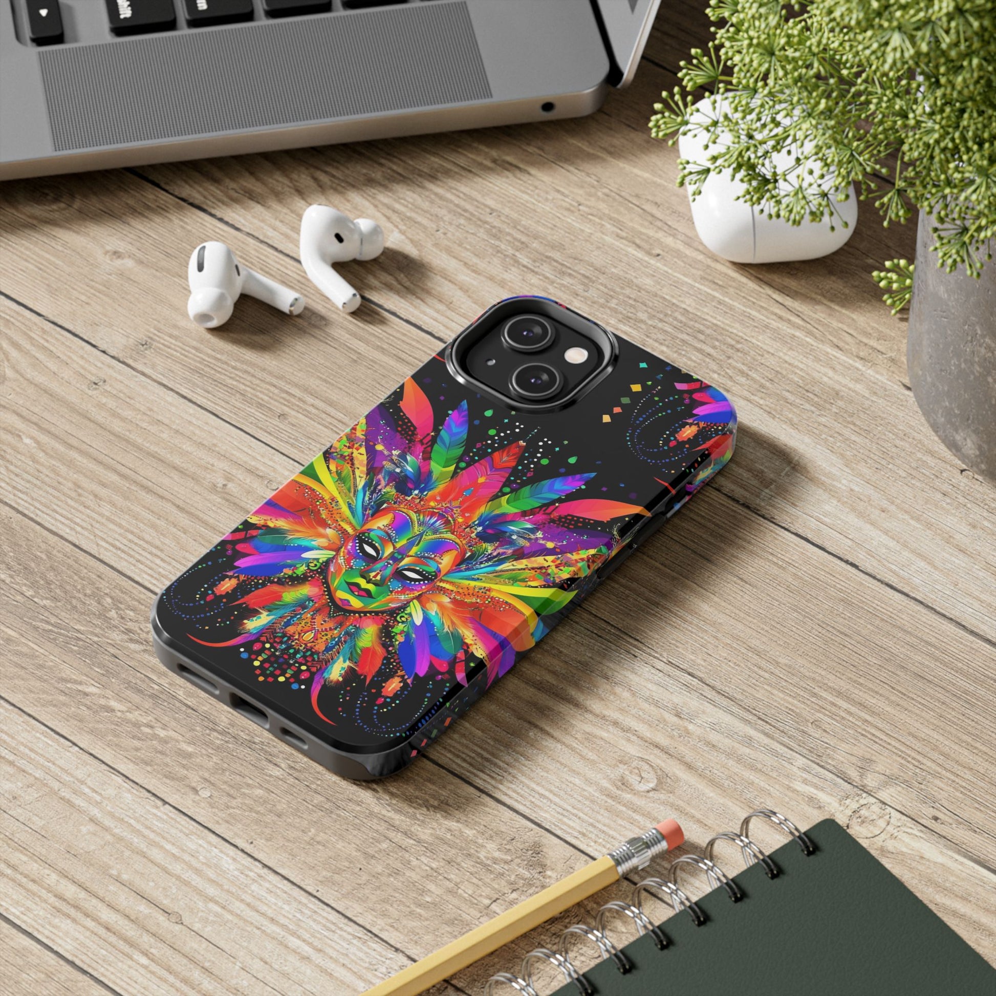 Let the rhythm of Carnival move you with this dazzling tough case for your iPhone or Samsung. Inspired by the vibrant colors and festive energy of Rio's iconic celebration, this design transforms your phone into a kaleidoscope of joy and self-expression.