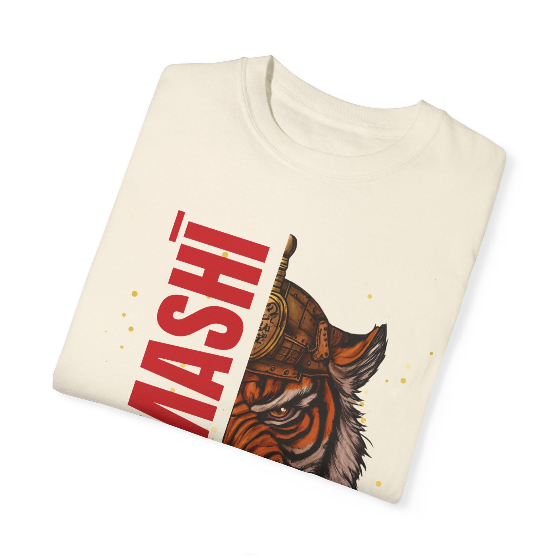 This tee features a captivating illustration of a tiger, the king of the jungle, adorned with the iconic helmet of a samurai warrior. The tiger's fierce gaze and powerful stance embody the strength and determination of the samurai spirit, while the intricate details of the helmet showcase the artistry and craftsmanship of Japanese culture.